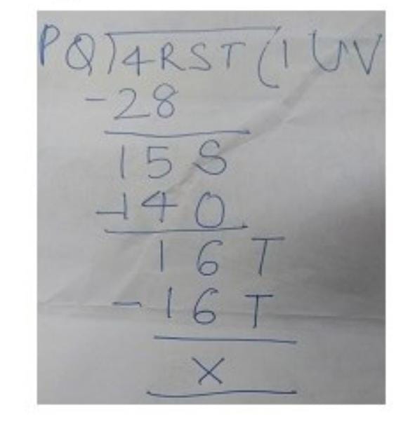 जब 4RST को PQ से विभाजित किया जाता है, तो भागफल 1UV और शेषफल 0 आता है T ज्ञात कीजिए?